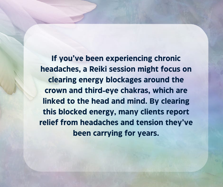 For example, if you’ve been experiencing chronic headaches, a Reiki session might focus on clearing energy blockages around the crown and third-eye chakras, which are linked to the head and mind. By clearing this blocked energy, many clients report relief from headaches and tension they’ve been carrying for years.
